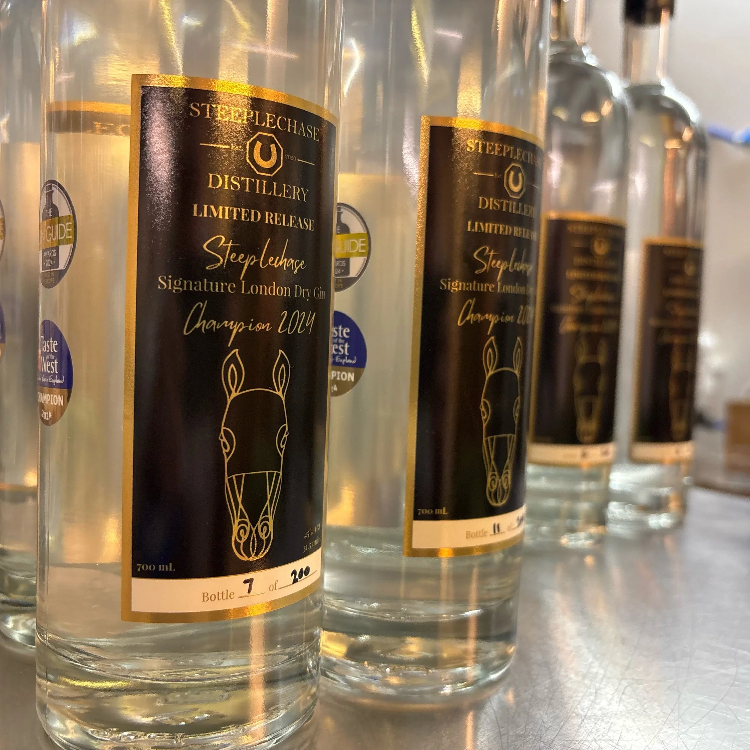 It has been a year of accolades as this gin was named Champion at the Taste of the West Awards, and Best in Europe at the Gin Guide Awards. This one off bottle commemorates our triumphs this year, with gilded print across every label. A quite stunning example of a London Dry Gin, and a memorable year to be treasured for Steeplechase Distillery.